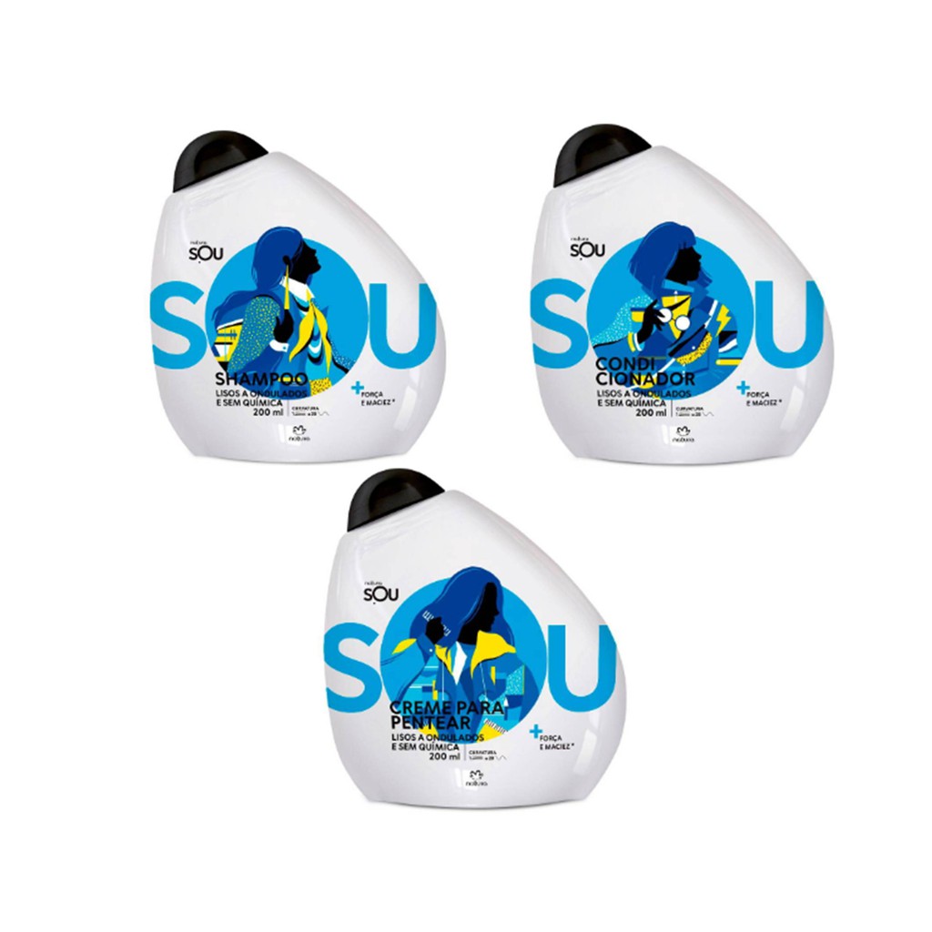 Kit Natura Sou Lisos a Ondulados e sem química - Shampoo, Condicionador, Creme de pentear