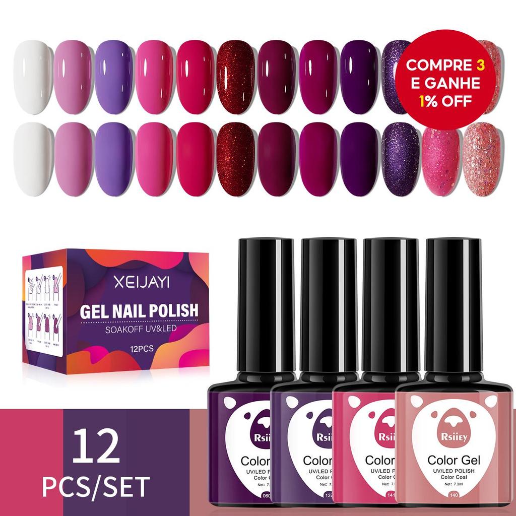 Conjunto de 12 Cores de Esmalte em Gel UV LED: libere sua criatividade com esmalte em gel para unhas em casa.