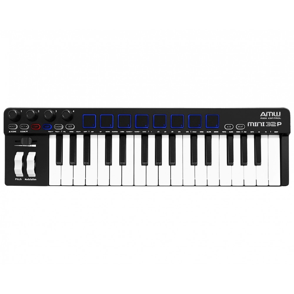 AMW Mini 32 PAD Black Teclado Controlador Midi 32 Teclas 8 PADs Arp Chord Hi End