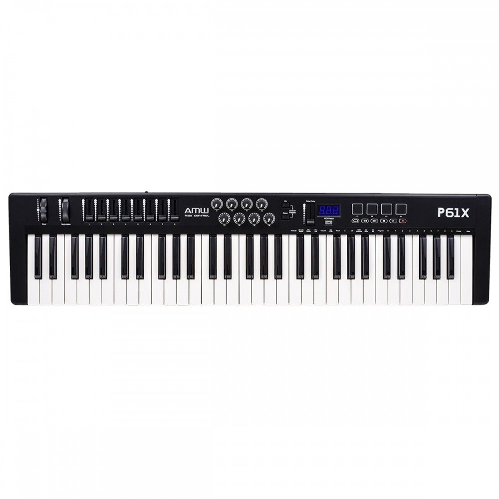 AMW P61X Teclado Black Controlador Midi USB com 61 Teclas PADs Faders e Knobs