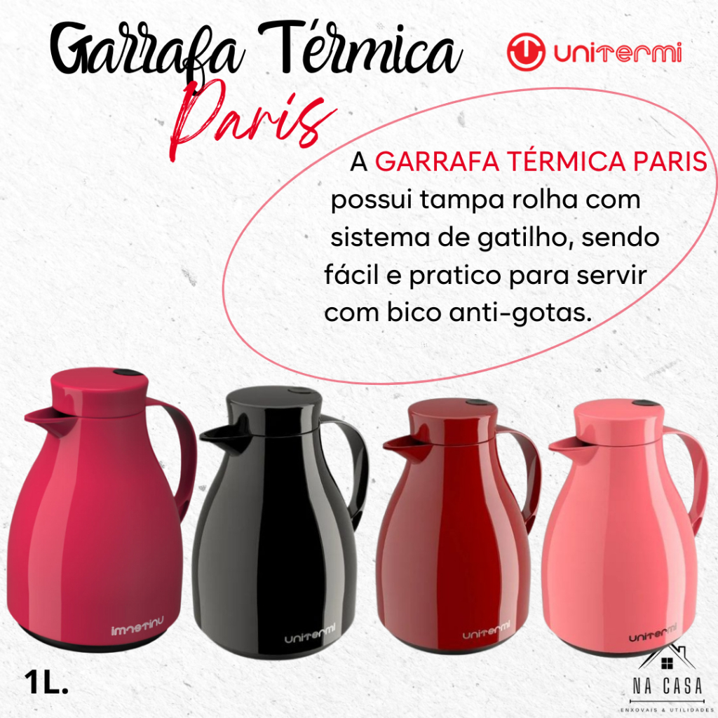 Garrafa Térmica Bule Unitermi Paris 1 Litro Cores C/ Gatilho Para Café Chá Leite Chimarrão Garrafa De Mesa