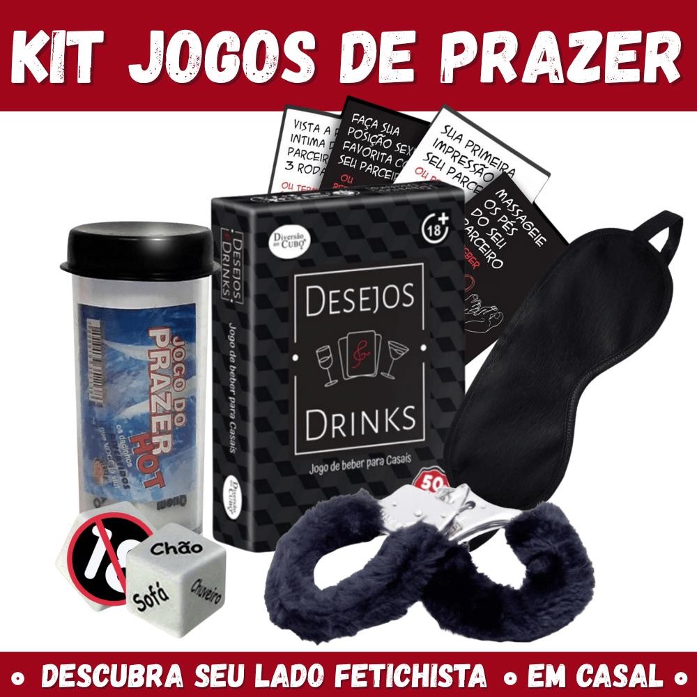 Kit casal sex shop produtos Baralho desejos e drinks + algema pelúcia + venda + jogo de dados