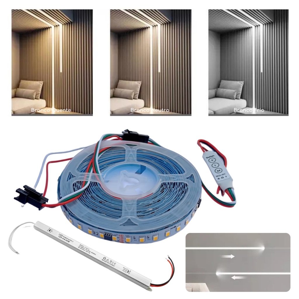 Fita De Led Com Efeito Sequencial Luz De Correr Vai E Volta Para Perfil 5M Com Fonte Slim Palito De 12V 3A E Controlador