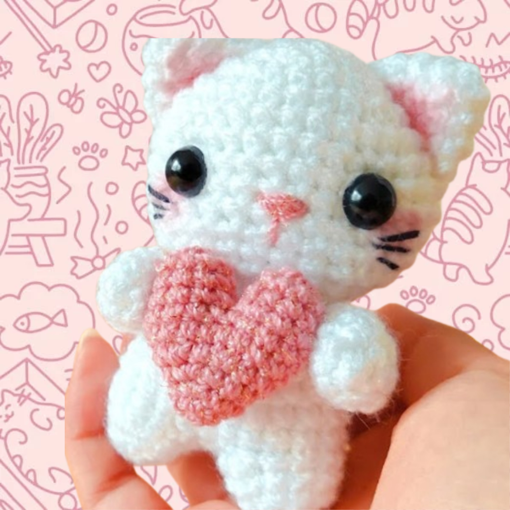 Chaveiro de Gatinho com coração em Crochê Amigurumi