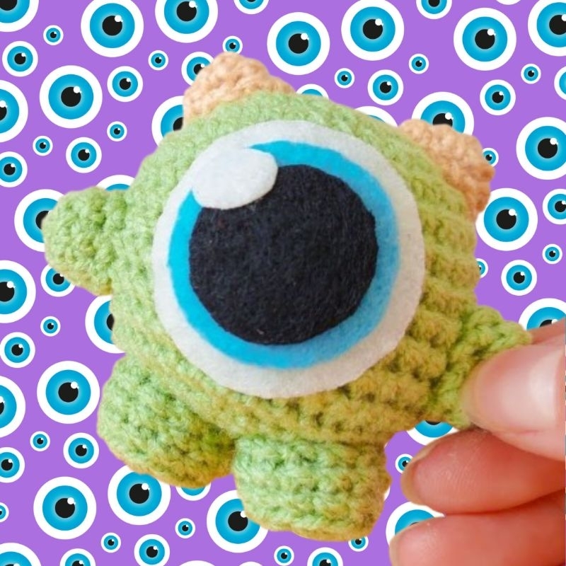 Mini Mike Wazowski em Crochê Amigurumi Monstros S.A. SA Chaveiro