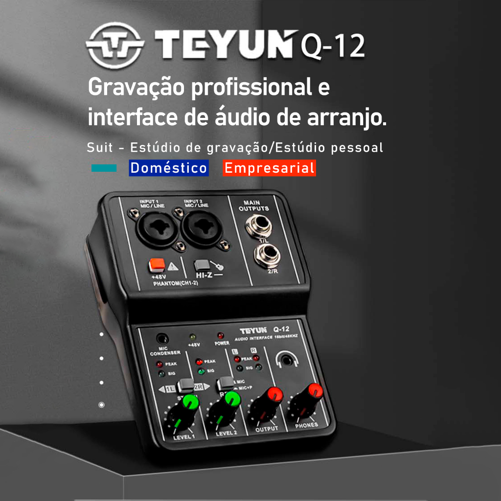 TEYUN-Placa De Som De Interface De Áudio Com Monitoramento, Guitarra Elétrica, Gravação Ao Vivo, Placa De Som Profissional Para Estúdio De Canto, Q-12