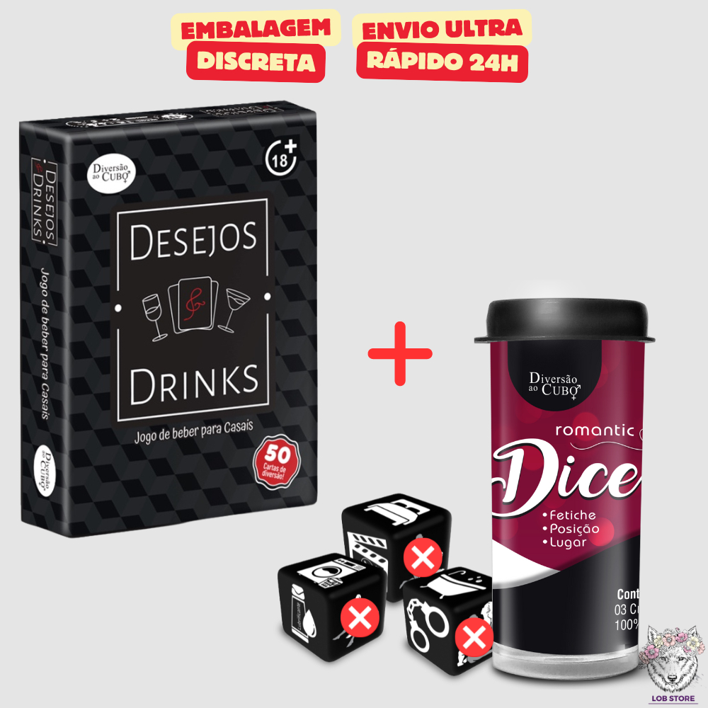 Kit Jogo Erótico Desejos e Drinks Jogo de Cartas + Dados Sexy Romantic Dice Copo Shot - Sex Shop