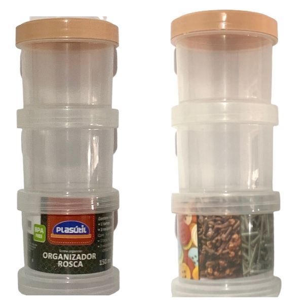 Porta Tempero e Condimentos Conjunto com 3 Peças Organizadoras Plástico Recipientes Empilháveis de Rosquear 150ml