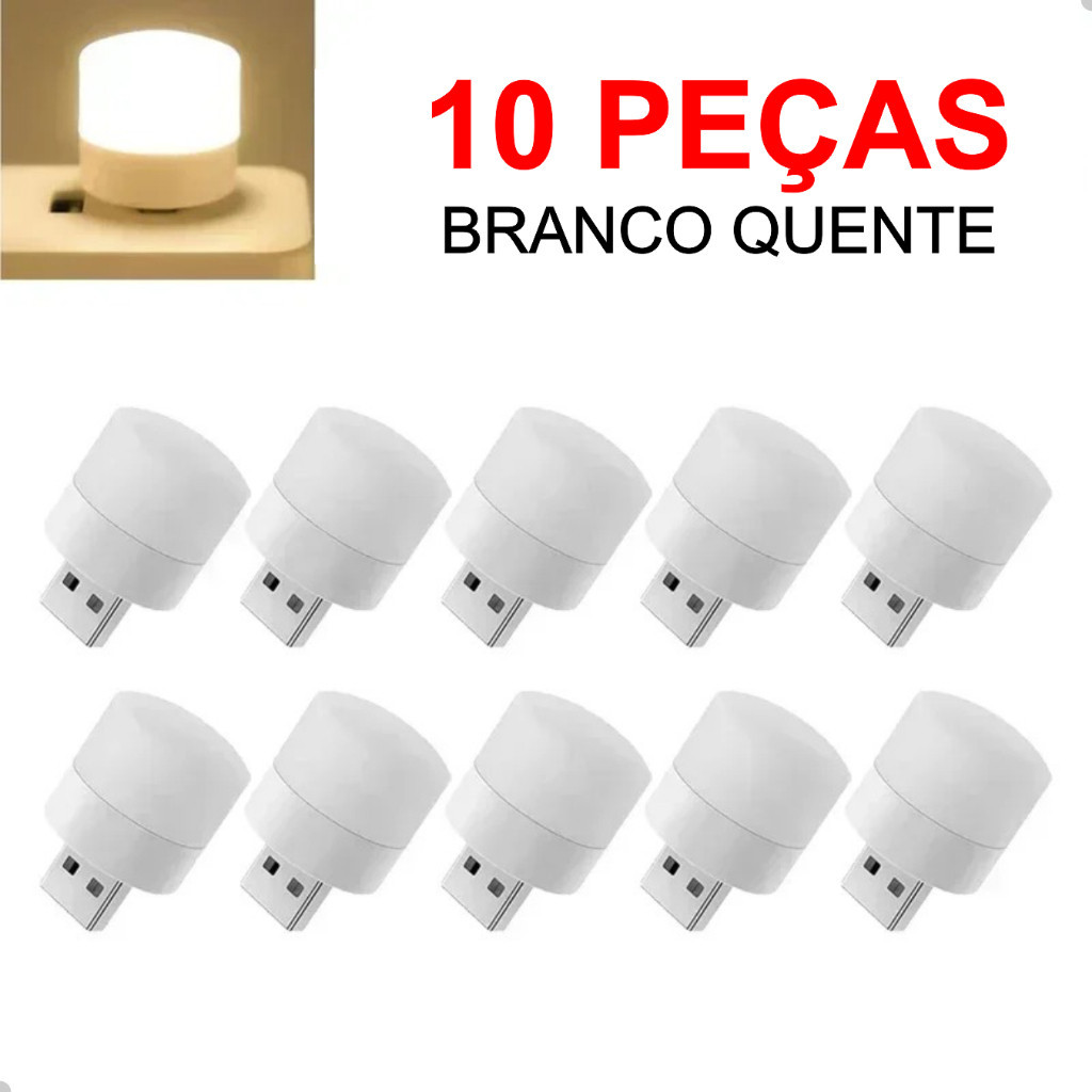 Mini Lampada Luz Noturna em LED Plugue USB Leitura Branco Frio Quente Kit 10 Peças ou 5 Peças