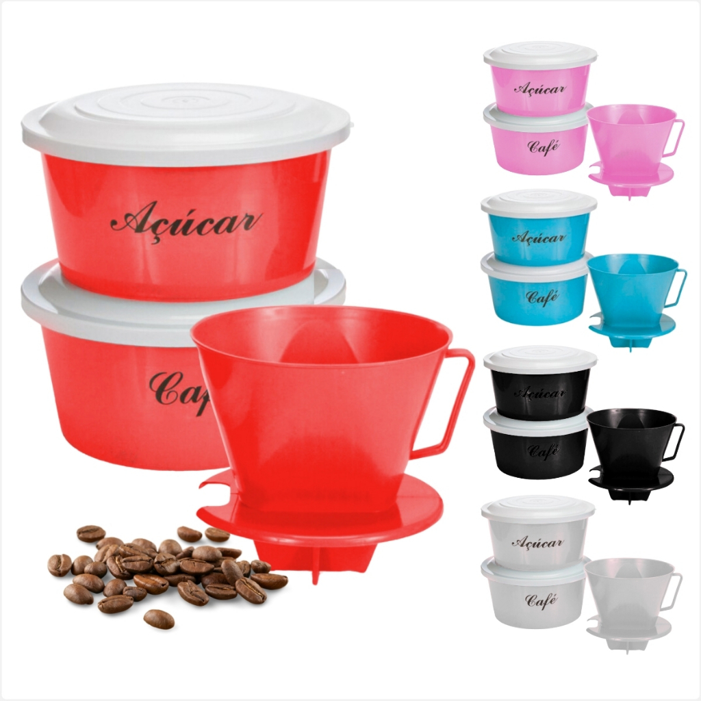 Kit De Potes Para Café e Açúcar Com Suporte Para Filtro de Café