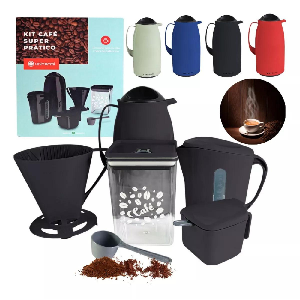 Kit Garrafa Térmica Café Prático com Açucareiro com Colher e Suporte para Filtro - UGF