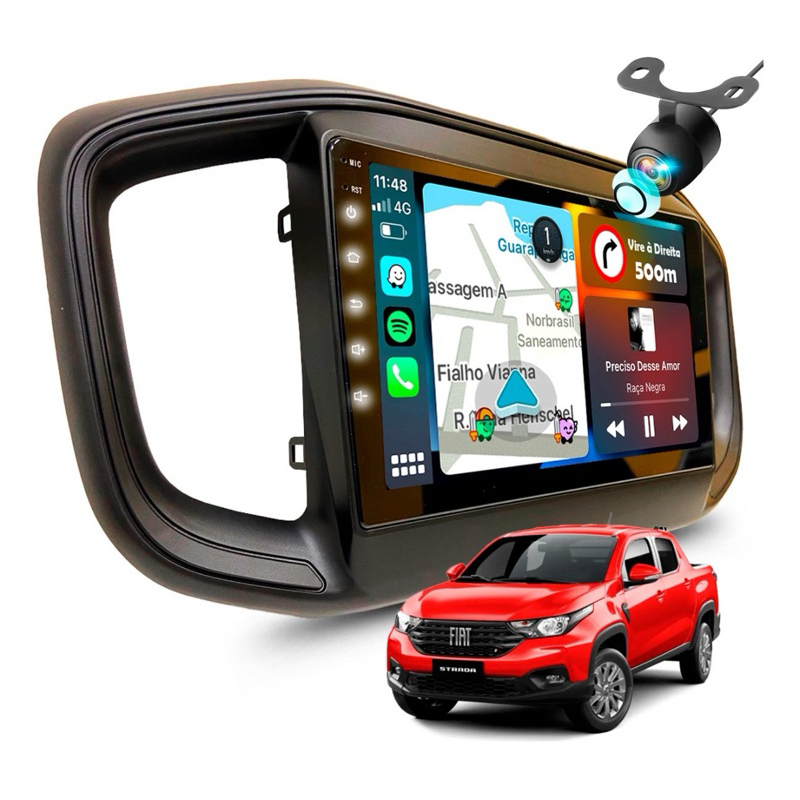 Central Multimídia Android Auto CarPlay Fiat Strada 2021 2022 2023 2024 + Moldura + Câmera de ré