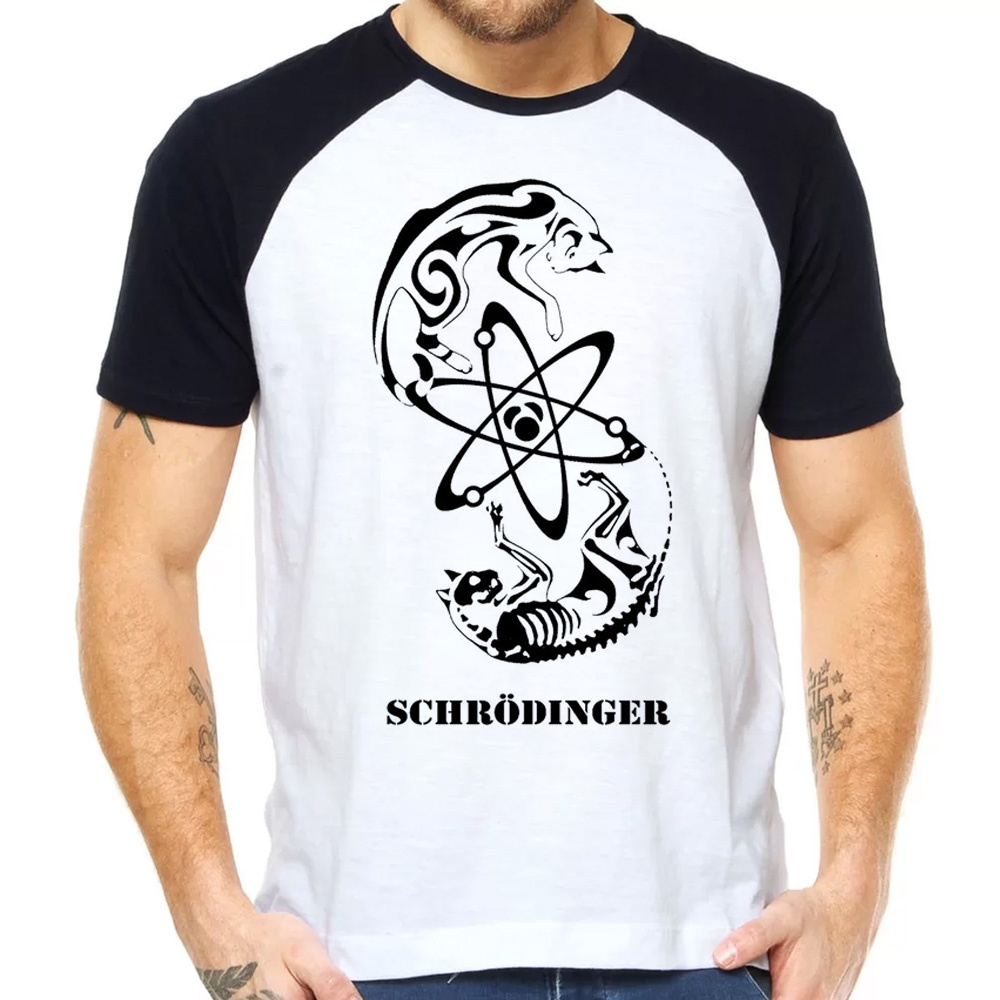 Camiseta Gato De Schrödinger Cat Ciência Camisa Blusa Raglan