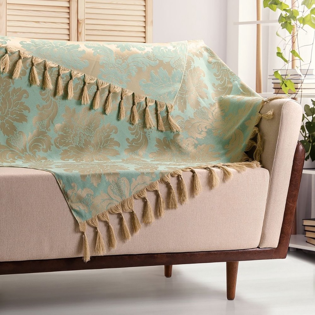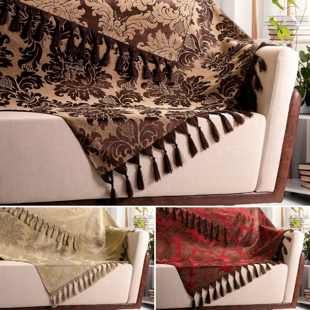 Manta Para Sofá Grande Tiffany Dourado Medalhão Imperial Confortável Com Franja Jacquard Luxo 2,20 X 1,40