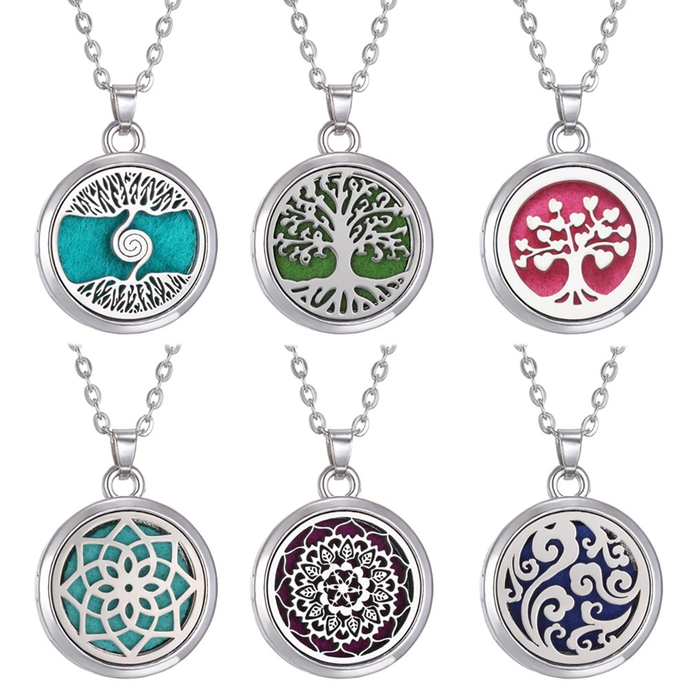 Colar Difusor De Perfume/Medalhão De Aço Inoxidável 15mm Árvore Da Vida/Aromaterapia