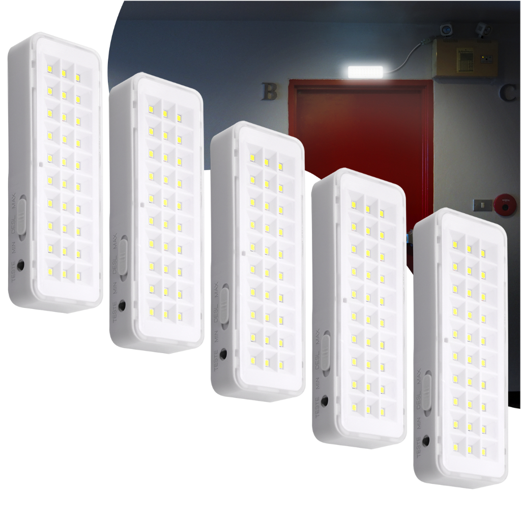 Kit 5 Luminária de Emergência Bateria Recarregável 30 leds Lâmpada Luz Branco Frio Bivolt 110v 220v