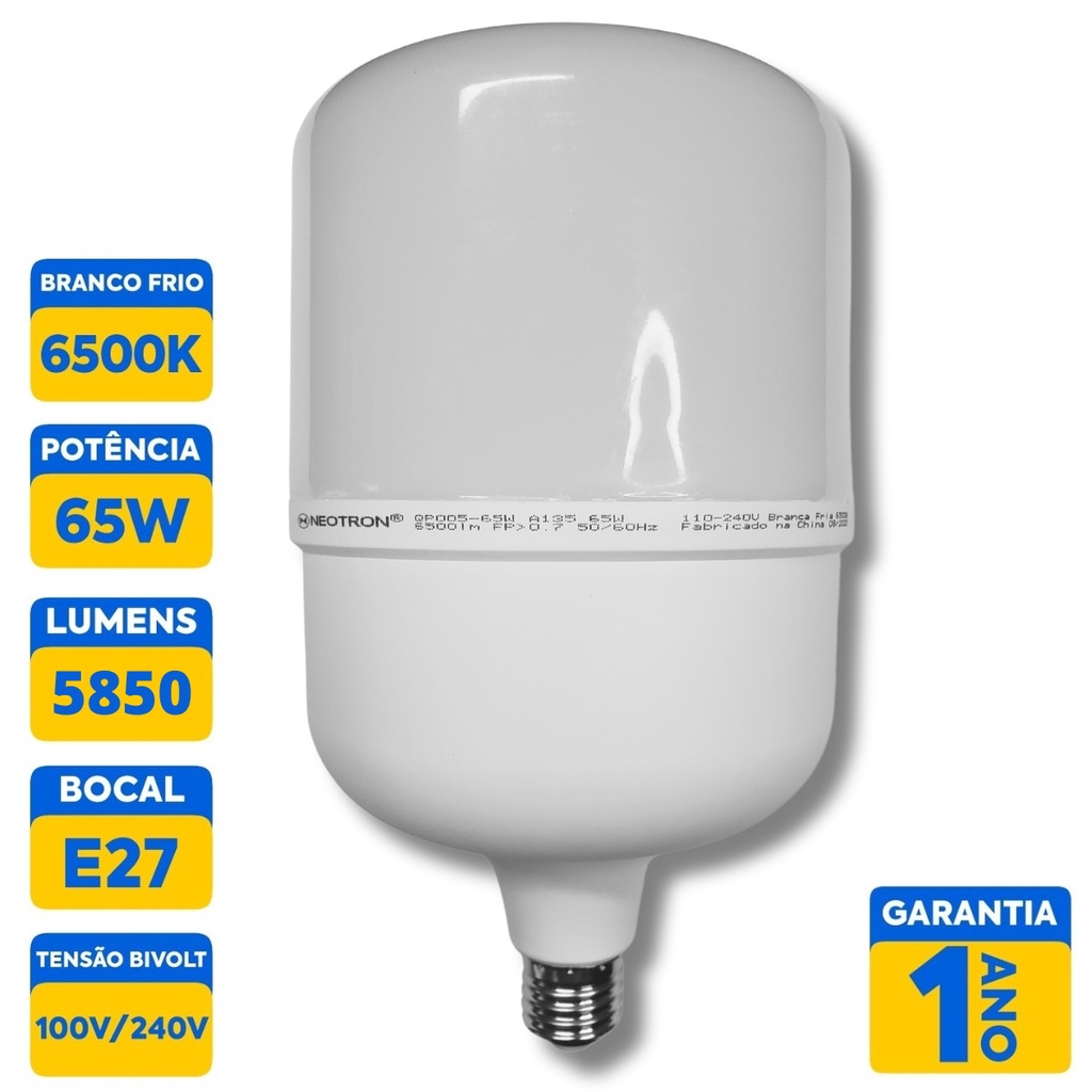 Lâmpada Led 65W 6500K Luz Branca Fria Bulbo Globo NEOTRON Bocal E27 BIVOLT 110V / 220V 5850 Lúmens - Iluminação Armazém Galpão Indrustrial