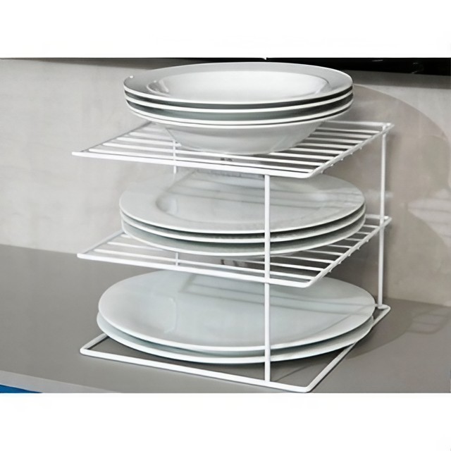 Organizador De Pratos Divisor 3 Níveis Rack Aramado Armario Cozinha Cor Branco e Preto