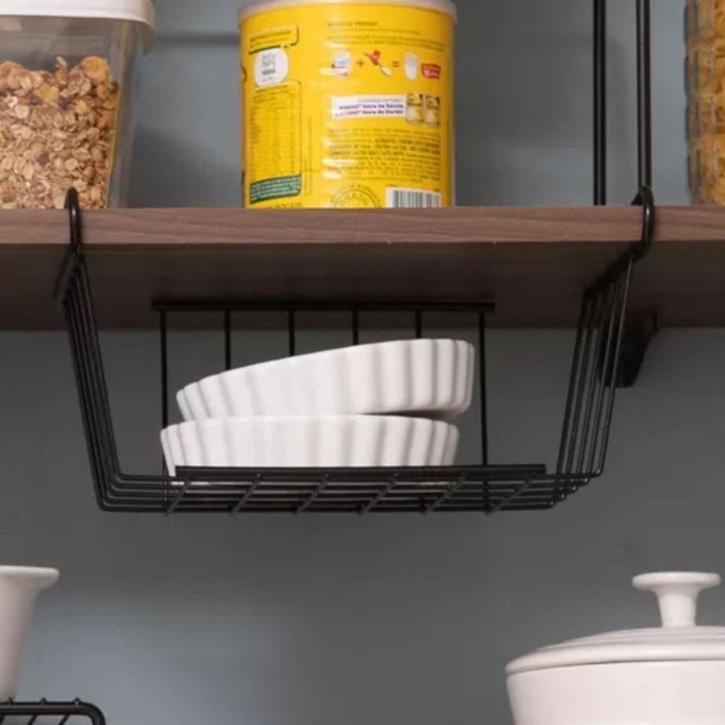 Cesto Suspenso Organizador Preto para Armário Cozinha Pequeno de Aço p/ Prateleira de Encaixe Gaveta - By Bsmix