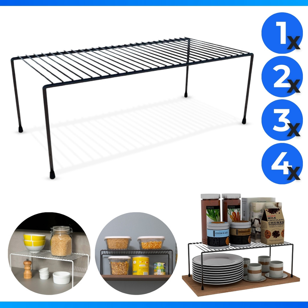 Kit 4, 3, 2, 1 Organizador de Armário 22cm Aramado Preto Branco Prateleira Suporte Aço Pratos Gaveta