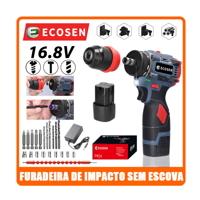 Furadeira Parafusadeira de impacto a bateria 16.8V/21V com maleta e acessórios - PI-10MA - Mondial (110V/220V) ECOSEN
