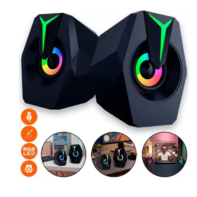 Caixa De Som Para Pc Notebook Usb P2 Gamer Led Rgb Potente