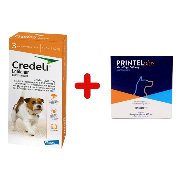 Kit Credeli Antipulgas 3 Comprimidos Cães de 5,5 a 11kg + Vermífugo Printel Plus 4 Comprimidos