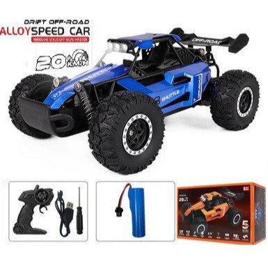 Carrinho de controle remoto recarregável Off-Road com luz LED metal, 1:16 20km AZUl