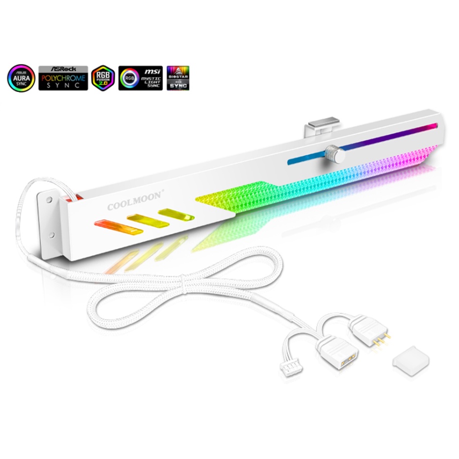 Suporte para Placa De Vídeo Coolmoon, Branco, LED ARGB 5v, 3 Pinos, 280mm, Controlável
