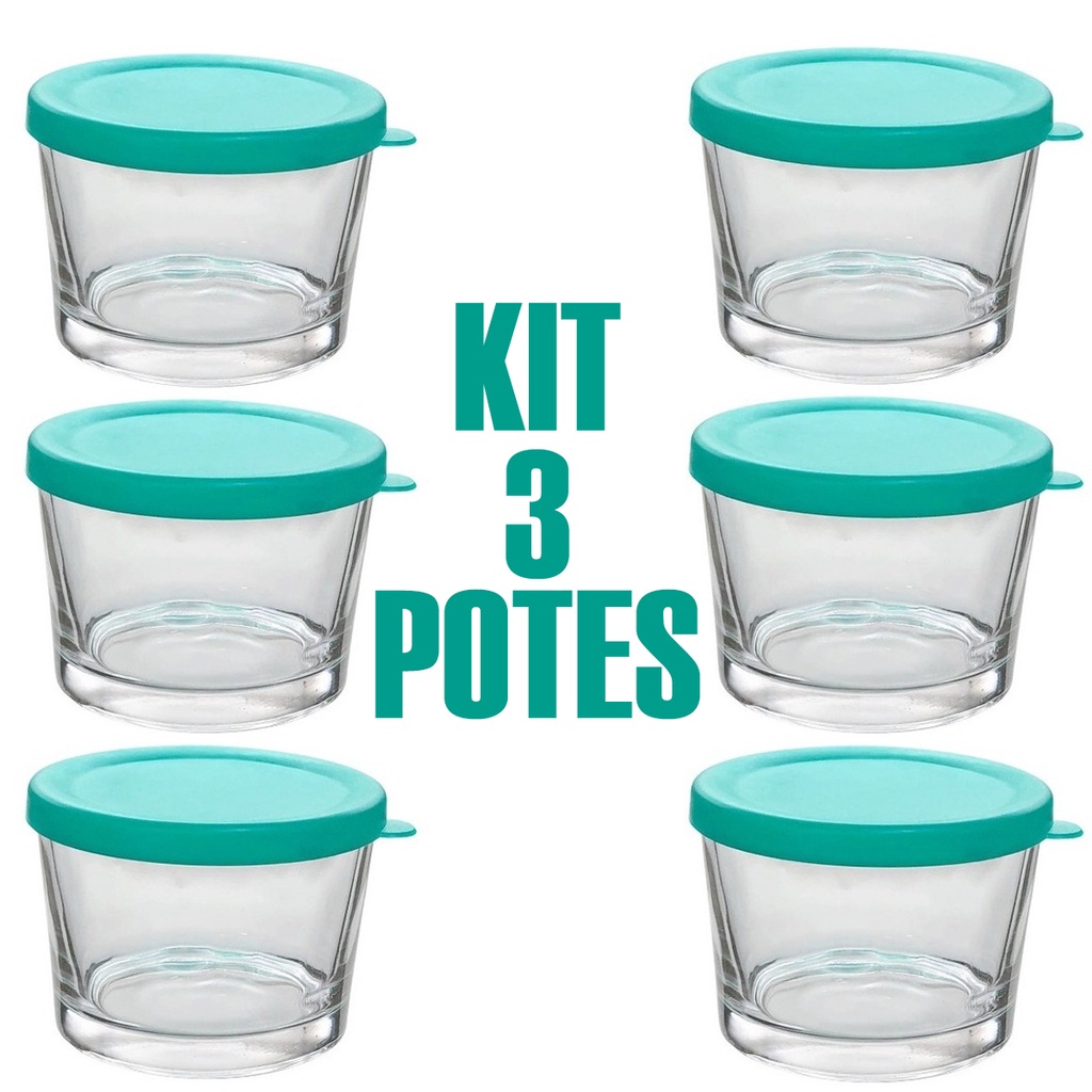 Kit 3 Potes Herméticos de Vidro Resistentes com Tampa e Trava