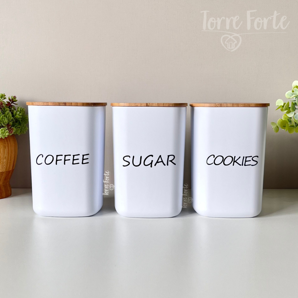 Kit 3 Potes Herméticos Pote De Café Açúcar Biscoito Coffee Sugar Cookies Potes Com Tampa De Bambu 1L