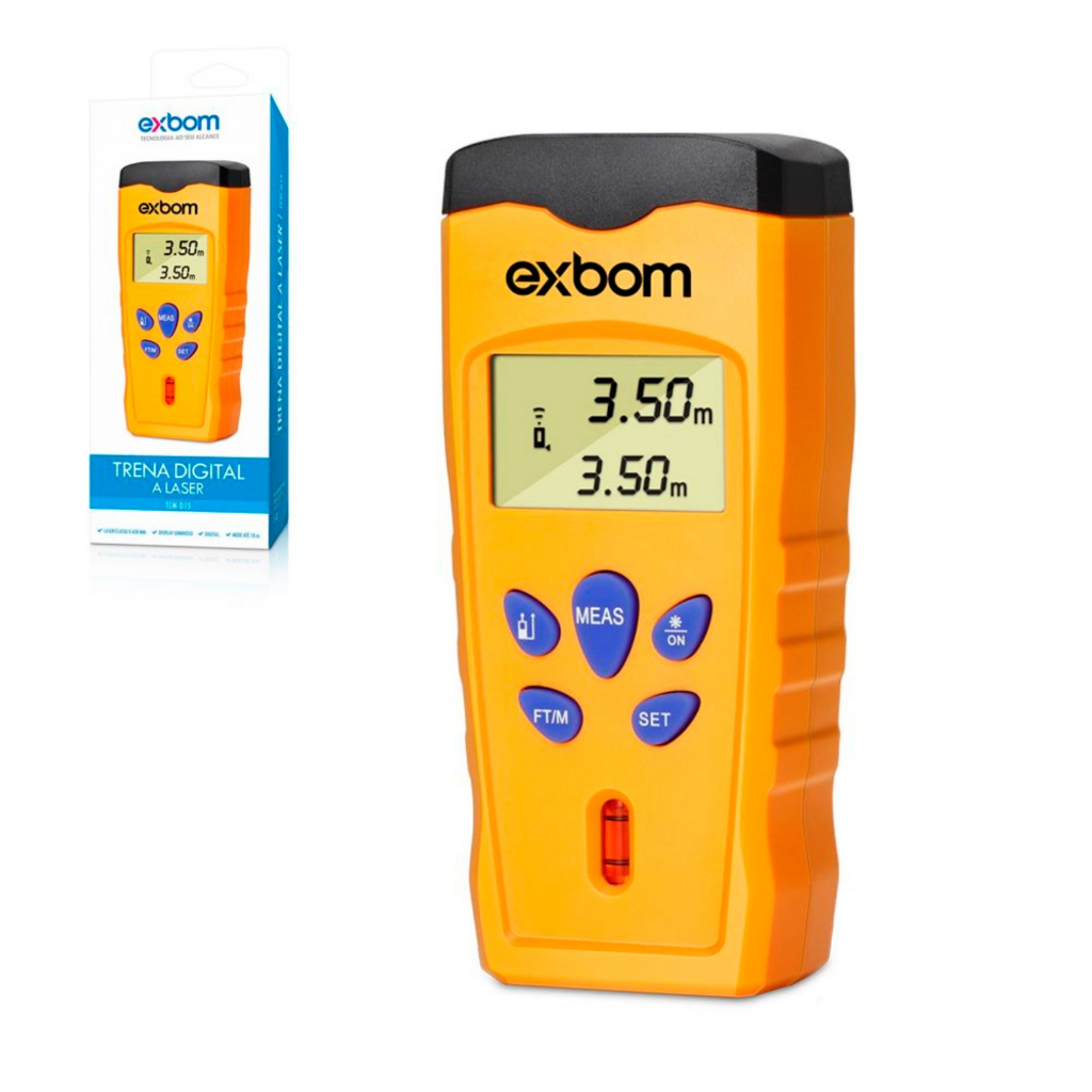 Trena digital a laser com nivel em bolha tela iluminada 18 metros EXBOM TEM-D15