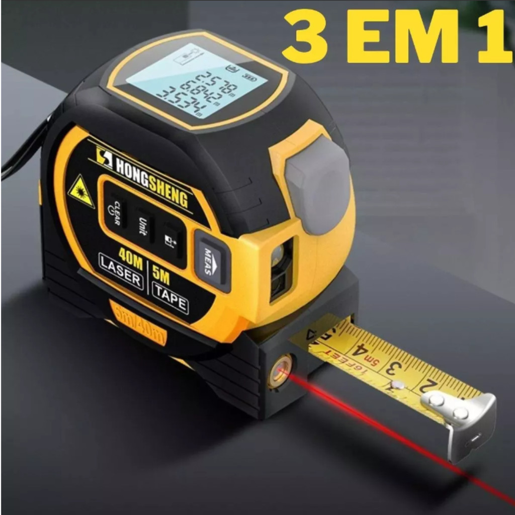Trena Digital 3 em 1 com Função nivel a laser 4D 40M Com Visor LCD Inteligente