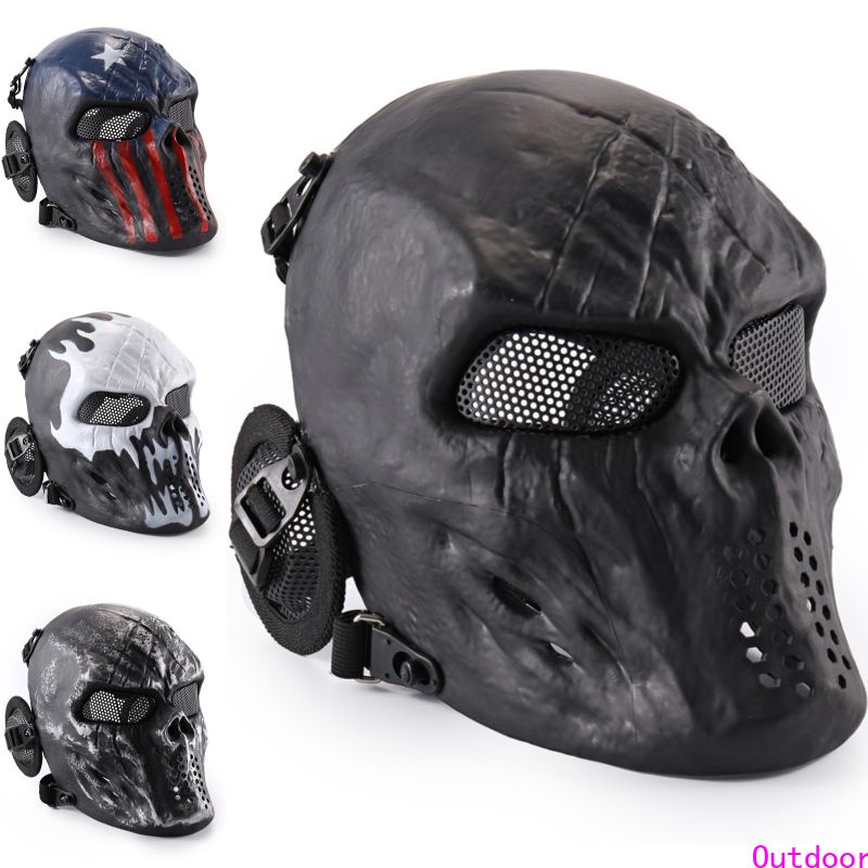 Máscara Tática De Caveira Para Airsoft, Rosto Cheio, Com Proteção De Ouvido, Cs, Halloween, Cosplay, Halloween, Máscara De Caveira Assustadora