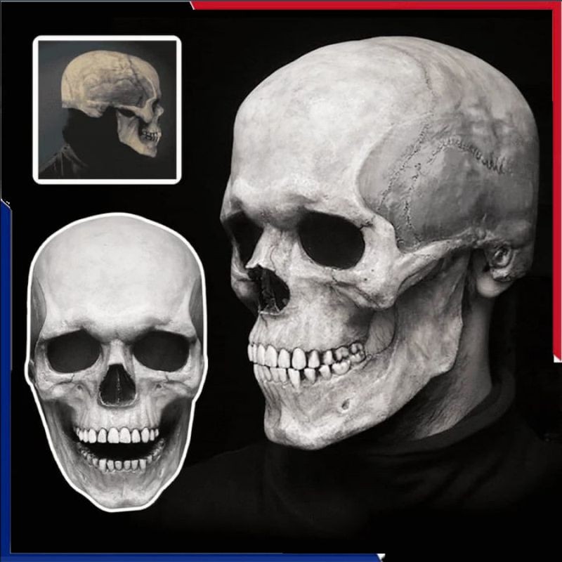 Mandíbula Móvel Cabeça Cheia Crânio Máscara Esqueleto Halloween Cosplay Assustadora Capacete De Terror Para Festival Fes
