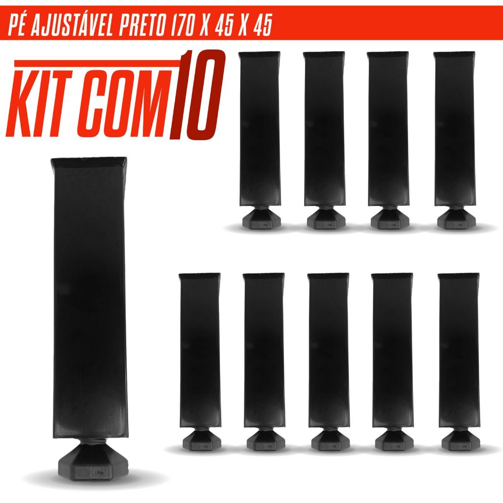 Kit 10 Pé para moveis Regulável Pés de Armário Cozinha Lavanderia Com ajuste de 17cm até 20cm Quadrado Preto