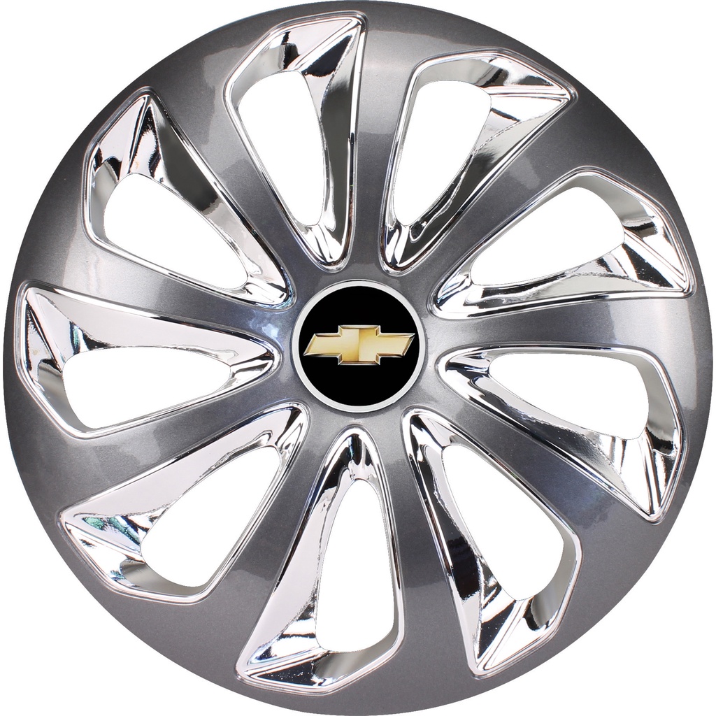 Kit Jogo Conjunto 4 Calotas Aro 13/14/15 Gm Chevrolet Celta Corsa Montana Onix Classic Prisma + Emblema Resinado