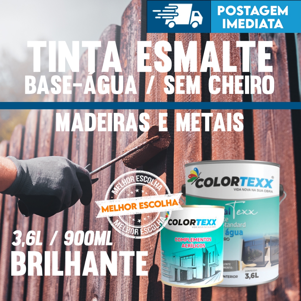 Tinta Esmalte BRILHANTE (Base água) 3,6L | 900ML Madeiras e metais sem cheiro Seca Rapido Colortexx