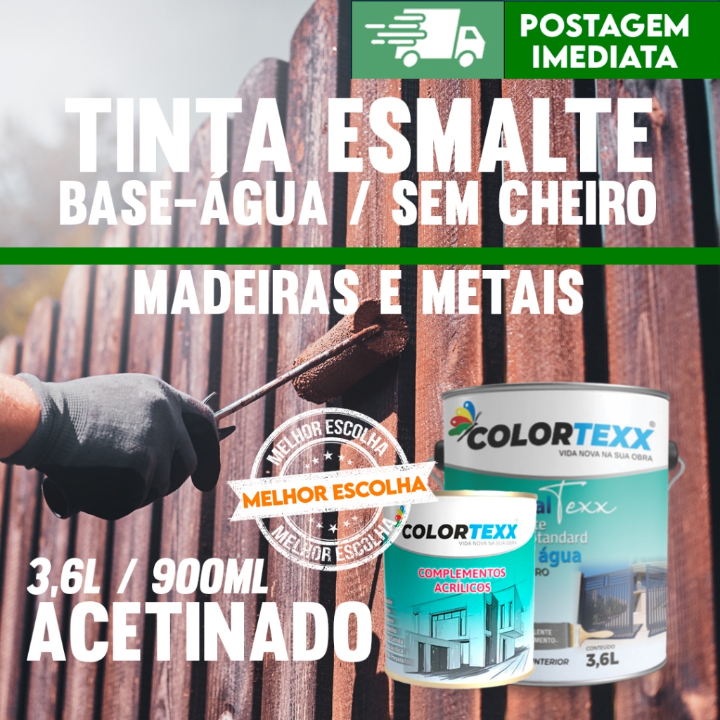 Tinta Esmalte ACETINADO (Base água) 3,6L | 900ML Madeiras e metais sem cheiro Seca Rapido Colortexx