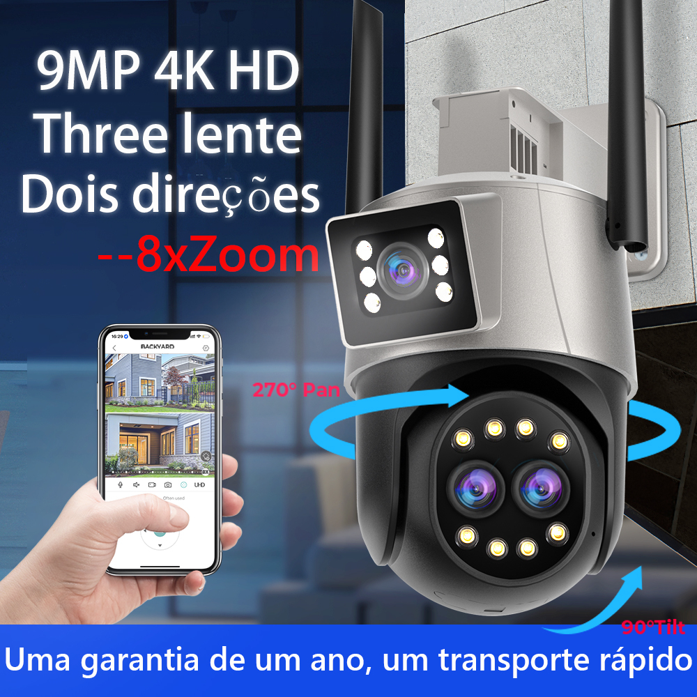 Câmera De Cftv ANBIUX 4K De Três Lentes Sem Fio Para Ambientes Externos 8XZOOM Segurança PTZ De 9MP HD Wifi Conectar Ao Celular