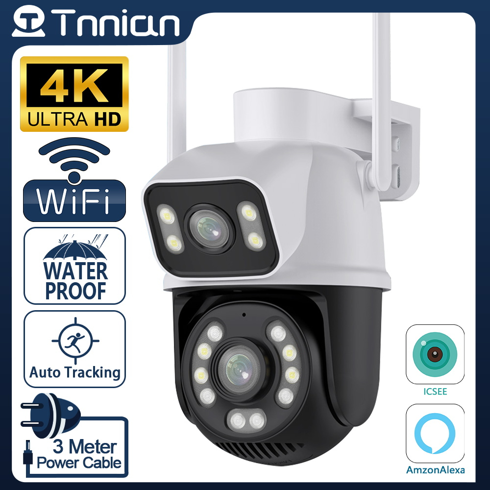 Tnnnian 4K 8MP Dual Lens HD PTZ Câmera IP WiFi À Prova D'água Para Ambientes Externos Alexa Screen AI Detecção Humana Full Color Night Vision CCTV De Segurança Doméstica Sem Fio ICSEE PRO