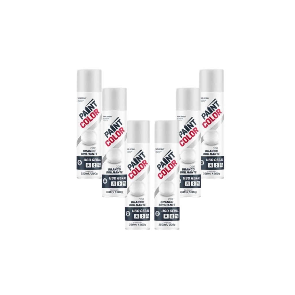Kit 6 Tinta Spray Aerosol Paint Color Branco Brilhante 350ml Uso Interno e Externo