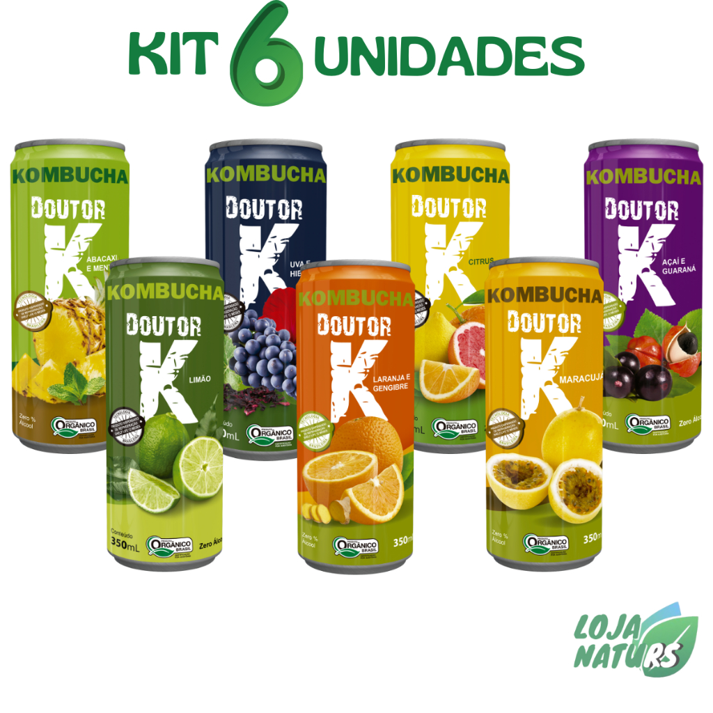 KIT 6 Kombucha Bebida Orgânica Refrigerante Vegano Lata 350ml - Doutor K