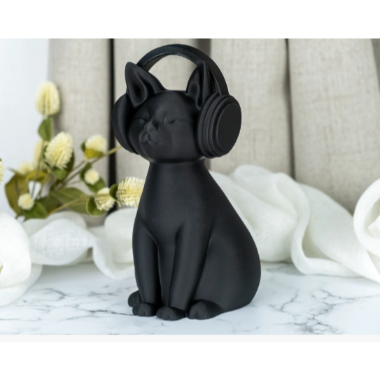 🎧🐱 Estátua Decorativa Gato com Fone de Ouvido - Impressão 3D