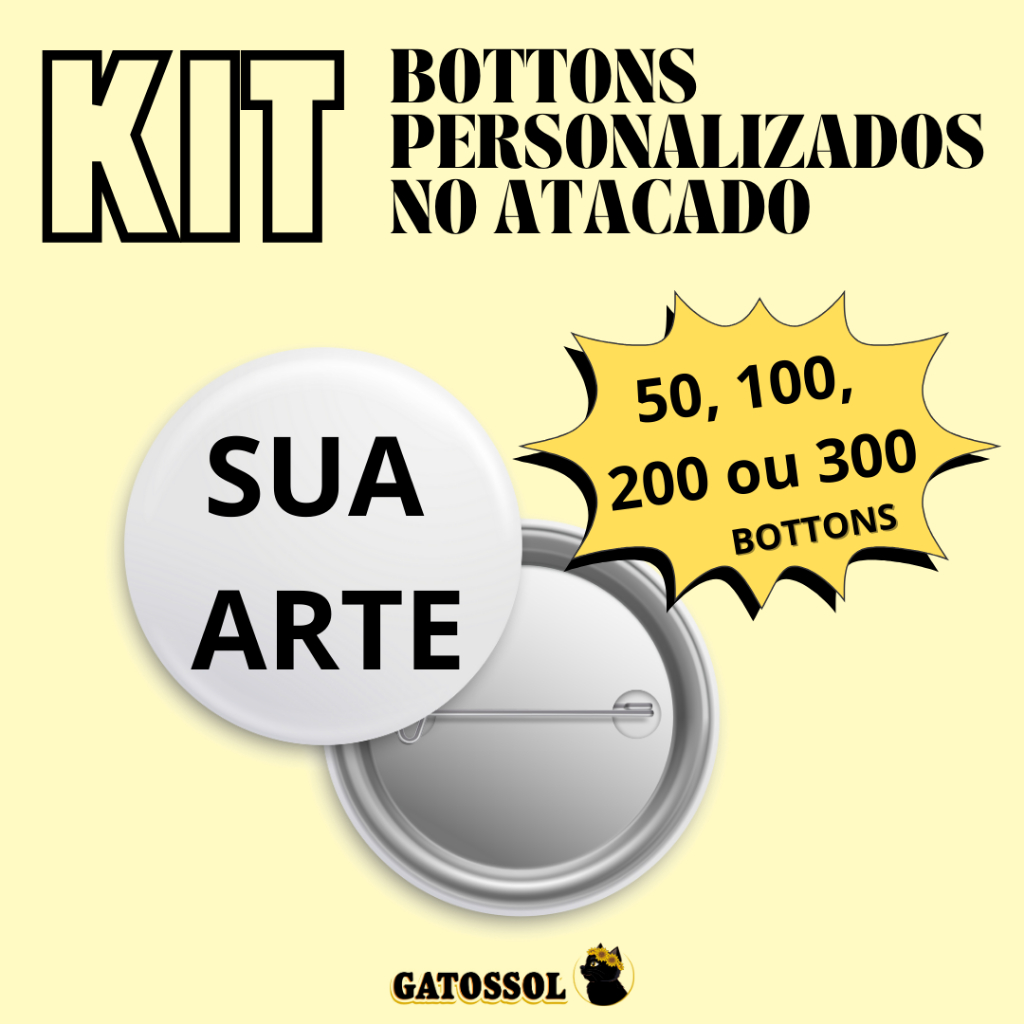 KIT com 50, 100, 200 ou 300 BOTTONS 4,5CM - PERSONALIZADO COM SUA ARTE! Broche Boton Buton Pin Bottom Botons
