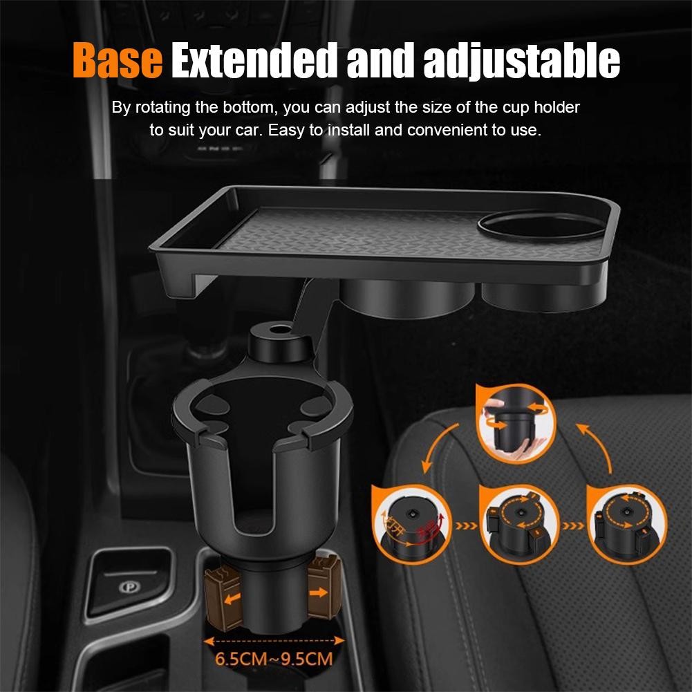 2025 Novo Expansor De Suporte De Copo De Carro Ajustável De 360 Graus Com Bandeja De Alimentos Bebida Multifuncional Bas
