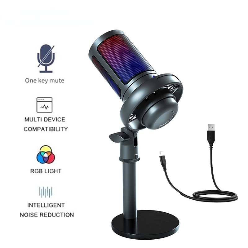 Microfone Gamer Profissional de Mesa Usb Rgb Lehmox Preto