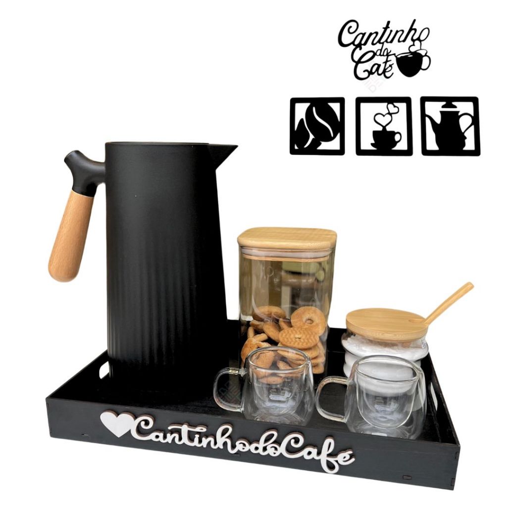 Kit Cantinho do Café com Bandeja Café da Manhã e Quadro Decorativo MDF Premium Preto