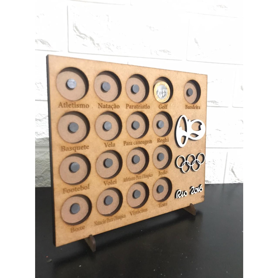 Porta Moedas Olímpicas Colecionador Mdf Cru com imã coleção de moedas, colecionador, expositor de coleção de moedas
