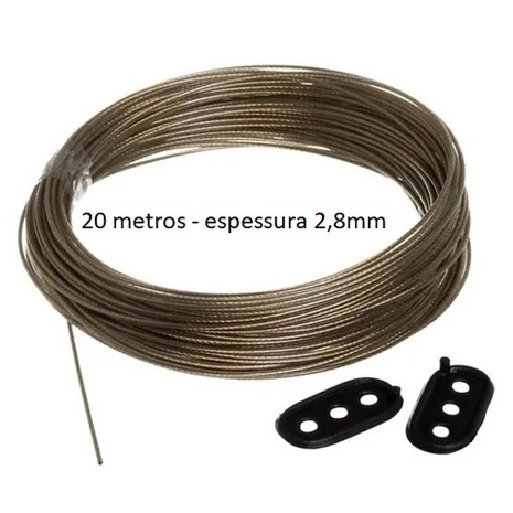 Corda Varal Cabo de Aço 20 Metros - Revestido PVC - espessura 2,80mm